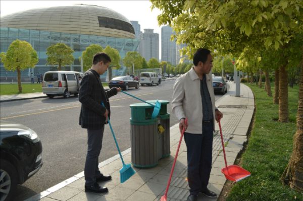顧不上欣賞春光明媚、水靜人和的美景,碧波蕩漾的如意湖畔出現(xiàn)了建投志愿者服務(wù)隊(duì)的身影,大家拿起掃帚、垃圾袋等工具一路前行,看見沿岸偶爾零散的垃圾或不易發(fā)現(xiàn)的紙屑便主動(dòng)上前進(jìn)行清理,很快,如意湖周邊的石柱、圍欄、長(zhǎng)椅就煥然一新,廣場(chǎng)周邊散落的紙屑、煙頭也被清掃干凈。