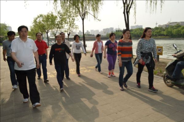 4月28日下午4:00,斜陽濃濃,微風(fēng)徐徐,在集團(tuán)公司領(lǐng)導(dǎo)秦廣遠(yuǎn)、付立文等同志的帶領(lǐng)下,近40名員工在樓下準(zhǔn)時(shí)集合,排成整齊的健步走隊(duì)伍,揮舞著“鄭州市建設(shè)投資集團(tuán)”的旗幟,精神抖擻地沿著如意湖畔闊步前行,在運(yùn)動(dòng)中體驗(yàn)健康和快樂。