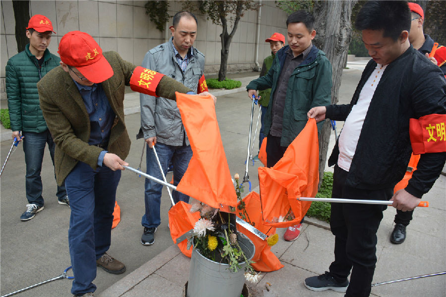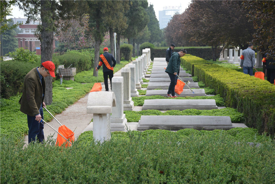 三、開展“倡議文明緬懷,減少廢棄污染”拾撿垃圾志愿服務(wù)活動。緬懷先烈活動結(jié)束后,市建投公司志愿者們在烈士陵園內(nèi)開展“倡議文明緬懷,減少廢棄污染”拾撿垃圾志愿服務(wù)活動。每位志愿者都手持垃圾鉗,認(rèn)真將散落在紀(jì)念碑前以及隱藏在雜草中的廢棄鮮花、飲料瓶、紙張等垃圾拾撿起來放入提前準(zhǔn)備好的垃圾袋中?;顒映掷m(xù)一個小時,志愿者們在祭奠先烈的同時以自己的實際行動表達(dá)崇敬之情,并倡導(dǎo)以獻(xiàn)一束花、敬一杯酒、植一棵樹、清掃墓碑等方式寄托哀思,將祭拜逝者的傳統(tǒng)習(xí)俗以更加環(huán)保、健康、安全、文明的方式表達(dá),營造文明祭祀的良好氛圍。