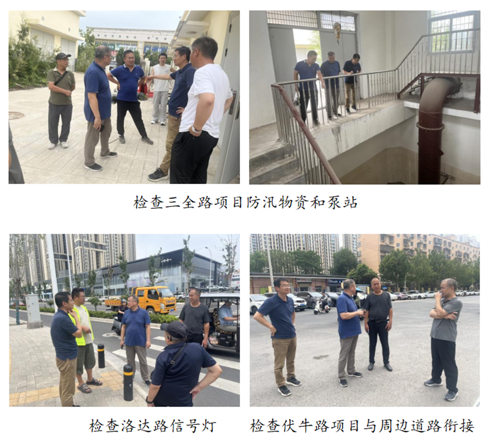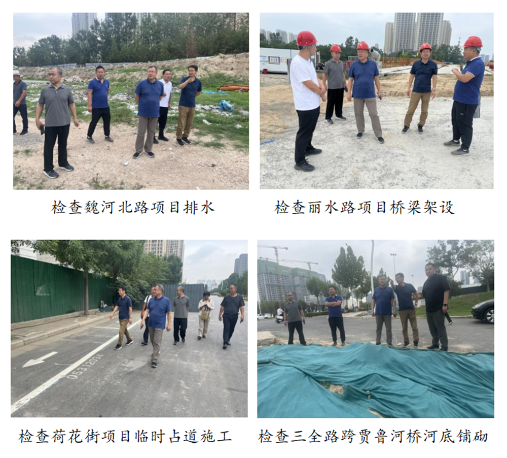 黃志澎分別檢查了魏河北路項目的排水、麗水路項目的橋梁架設(shè)和道路施工、洛達路項目和荷花街項目與周邊道路的安全銜接、三全路項目的河道鋪砌和下穿鐵路涵洞泵站,并查看了防汛物資準(zhǔn)備情況。
